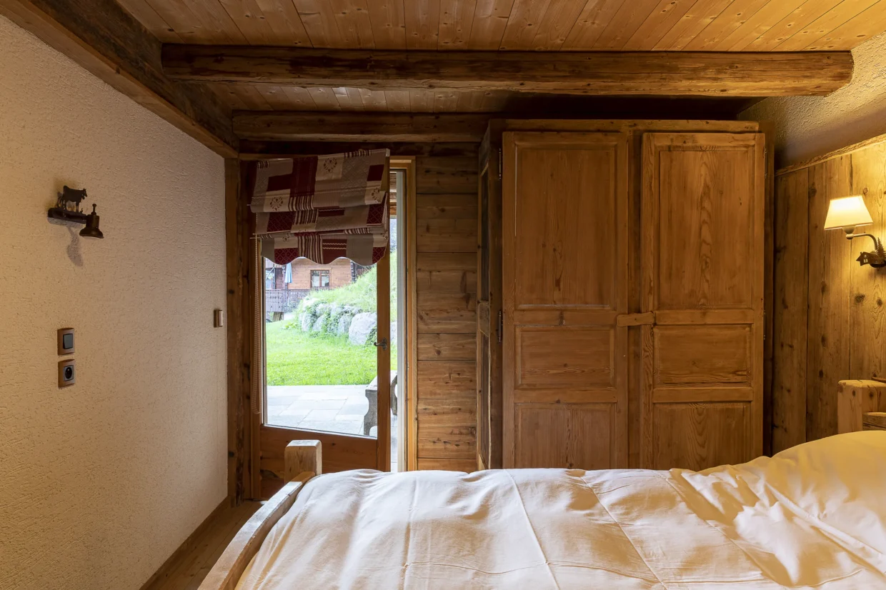 Bois Neige dispose de 6 chambres : 3 chambres avec lits doubles (160 cm), 2 chambres avec lits jumeaux convertibles en grands lits, 1 chambre enfants avec lits superposés. Cette configuration accueille confortablement 12 personnes.